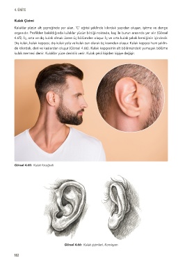 de kıkırdak, deri ve kaslardan oluşur (Görsel 4.66). Kulak kepçesinin alt bölümündeki yumuşak bölüme
