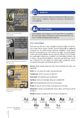 ayrılır (Görsel 3.9). Yazı stilleri ve aileleri özgün yapılarına, anato-