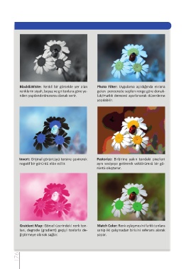 renklerin siyah, beyaz ve gri tonlara göre ye- gelen pencerede seçilen renge göre donuk-