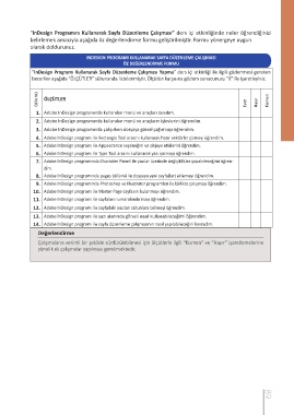 “InDesign Programı Kullanarak Sayfa Düzenleme Çalışması Yapma” ders içi etkinliği ile ilgili gözlenmesi gereken