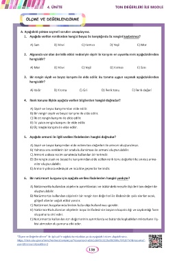 1. Aşağıda verilen renklerden hangisi beyaz ile karıştığında öz rengini kaybetmez?