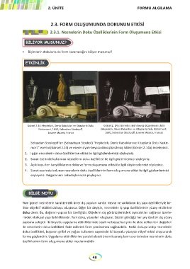 formu güçlendirir. Uygulama etkinliklerine paralel olarak önemli sanatçıların eserlerinden nesnelerin doku