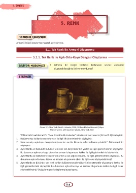 1. Natürmortta kullanılan renk tonları ile ilgili ilk izlenimlerinizi söyleyiniz.