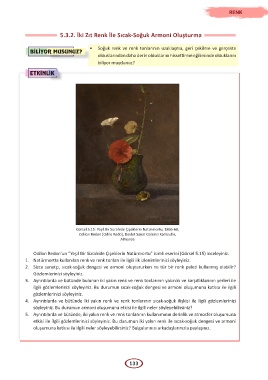 etkisi ile ilgili gözlemlerinizi söyleyiniz. Bu durumun iki yakın renk ile sıcak-soğuk dengesi ve armoni