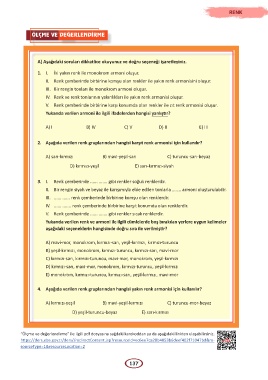 III. ...... ...... renk çemberinde birbirine komşu olan renklerdir.