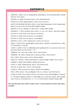 Not: (Kaynakça atıf sistemi, APA 6.0 yazım kuralları ve kaynak gösterme biçimine göre düzen-