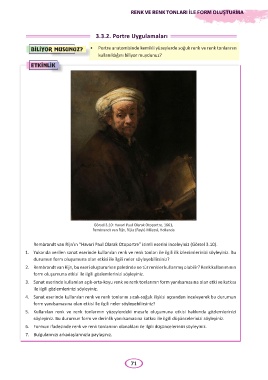 2. Rembrandt van Rijn, bu eseri oluştururken paletinde ne tür renkler kullanmış olabilir? Renk kullanımının