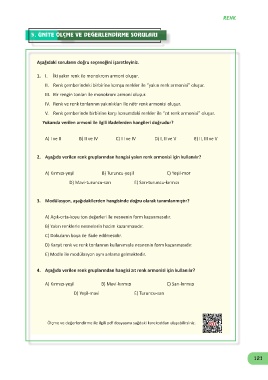 D) Mavi-turuncu-sarı E) Sarı-turuncu-kırmızı