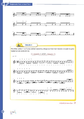3 Bağlamada Teke ve Azeri Tavrı Etkinlik 6 Etkinlikte verilen 1 ve 5 arası etütleri öğrenmiş olduğunuz Azeri tavrı tezene vuruşlarına göre bağlamanızla seslendiriniz. 1. ETÜT Etkinlik devam ediyor. 102
