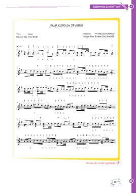 Bağlamada Zeybek Tavrı 4 İZMİR KORDON ZEYBEĞİ Yöre : İzmir Derleyen : TRT MÜZİK DAİRESİ Kaynak Kişi: Yöre Ekibi Notaya Alan: Erdem ÇALIŞKANEL Devamı bir sonraki sayfadadır. 157