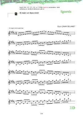 Sayfa 169, 170, 171, 172 ve 173'teki egzersiz çalışmalarını farklı artikülasyon teknikleri kullanarak çalınız. Egzersiz Si majör sol diyez minör 1 Elçin ÇINAR SELAMET 169