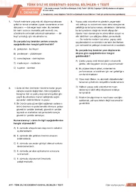 AYT • TÜRK DİLİ VE EDEBİYATI-SOSYAL BİLİMLER-1 TESTİ Diğer sayfaya geçiniz. 11