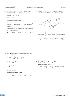 26. a ve b gerçek sayılar olmak üzere gerçek sayılar 28. Aşağıda y = f(x) fonksiyonunun grafiği ve grafiğe 74