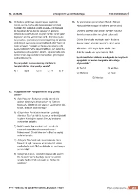 AYT • TÜRK DİLİ VE EDEBİYATI-SOSYAL BİLİMLER-1 TESTİ Diğer sayfaya geçiniz. 263