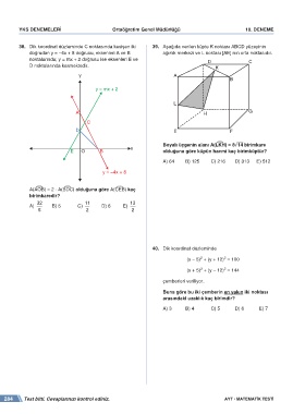 38. Dik koordinat düzleminde C noktasında kesişen iki 39. Aşağıda verilen küpte K noktası ABCD yüzeyinin