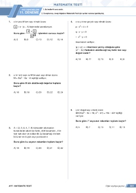 AYT • MATEMATİK TESTİ Diğer sayfaya geçiniz. 301