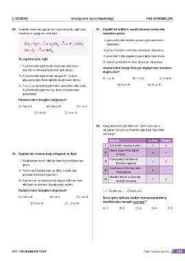 29. İnsanda solunum gazlarının taşınması ile ilgili bazı 31. Çiçekli bir bitkinin eşeyli üremesi sırasında