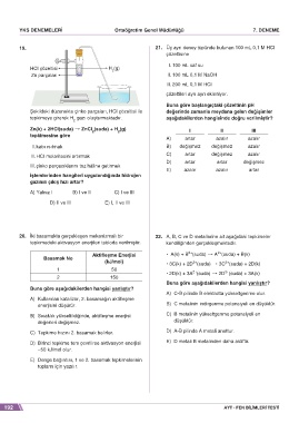 20. İki basamakta gerçekleşen mekanizmalı bir 22. A, B, C ve D metallerine ait aşağıdaki tepkimeler