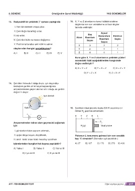 13. Radyoaktif bir çekirdek β ışıması yaptığında 15. X, Y ve Z atomlarının temel hâldeki elektron