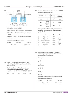 21. v 23. Bazı moleküllere ait geometri, bağ açısı ve VSEPR