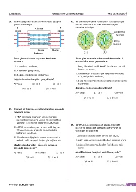 28. İnsanda çizgili kasa ait sarkomer yapısı aşağıda 30. Bir bitkinin epidermis hücrelerinin farklılaşmasıyla
