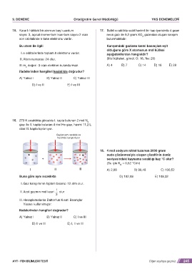 15. Kararlı hâldeki bir atomun baş kuantum 17. Belirli sıcaklıkta sabit hacimli bir kap içerisinde 4 gram