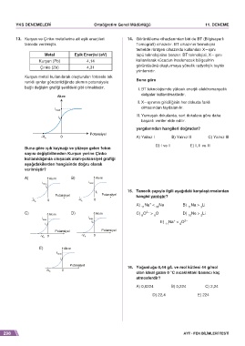 13. Kurşun ve Çinko metallerine ait eşik enerjileri 14. Görüntüleme cihazlarından biri de BT (Bilgisayarlı