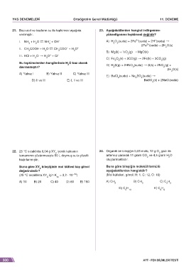 22. 25 °C sıcaklıkta 0,04 g XY iyonik katısının 24. Organik bir bileşiğin 0,05 molü, 12 g O gazı ile