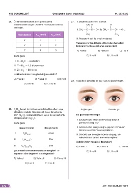 25. Üç farklı hidrokarbon bileşiğinin yanma 27. I. Bütanoik asit ile etil etanoat