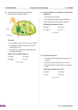 33. Aşağıda kloroplast organelinde gerçekleşen 34. Çok yıllık bitkilere ait kollenkima ve sklerenkima