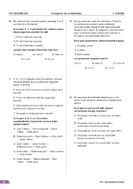 10. Bir nükleer fisyon reaksiyonunda X çekirdeği Y ve Z 12. Güneş gözlemleri yapan bir astrofizikçi, Güneş’in