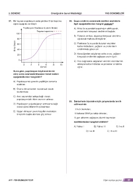 37. Bir hayvan popülasyonunda görülen S tipi büyüme 38. insan sindirim sisteminde üretilen enzimlerle