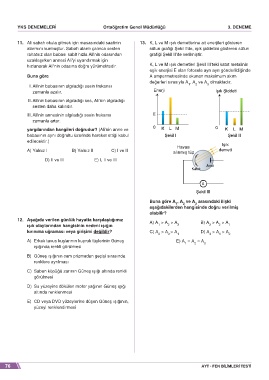 11. Ali sabah okula gitmek için masasındaki saatinin 13. K, L ve M ışık demetlerine ait enerjileri gösteren