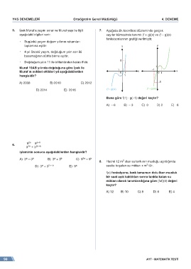 5. İpek Murat’a yaşını sorar ve Murat yaşı ile ilgili 7. Aşağıda dik koordinat düzleminde gerçek