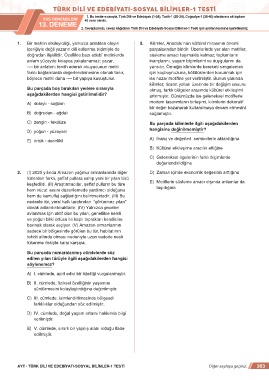 AYT • TÜRK DİLİ VE EDEBİYATI-SOSYAL BİLİMLER-1 TESTİ Diğer sayfaya geçiniz. 363