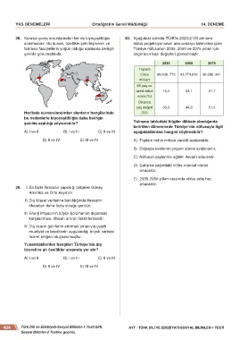 38. Küresel çevre sorunlarından biri de biyoçeşitliliğin 40. Aşağıdaki tabloda TÜİK’in 2023-2100 dönemi