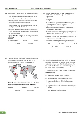 16. Aşağıda bazı medeniyetlere ait özellikler verilmiştir. 18. Doğada meydana gelen bir olay, mekânın coğrafi