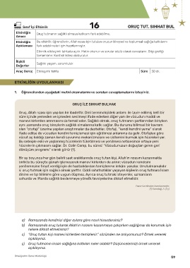 Etkinliğin Oruç tutmanın sağlıklı olmaya katkısını fark edebilme.
