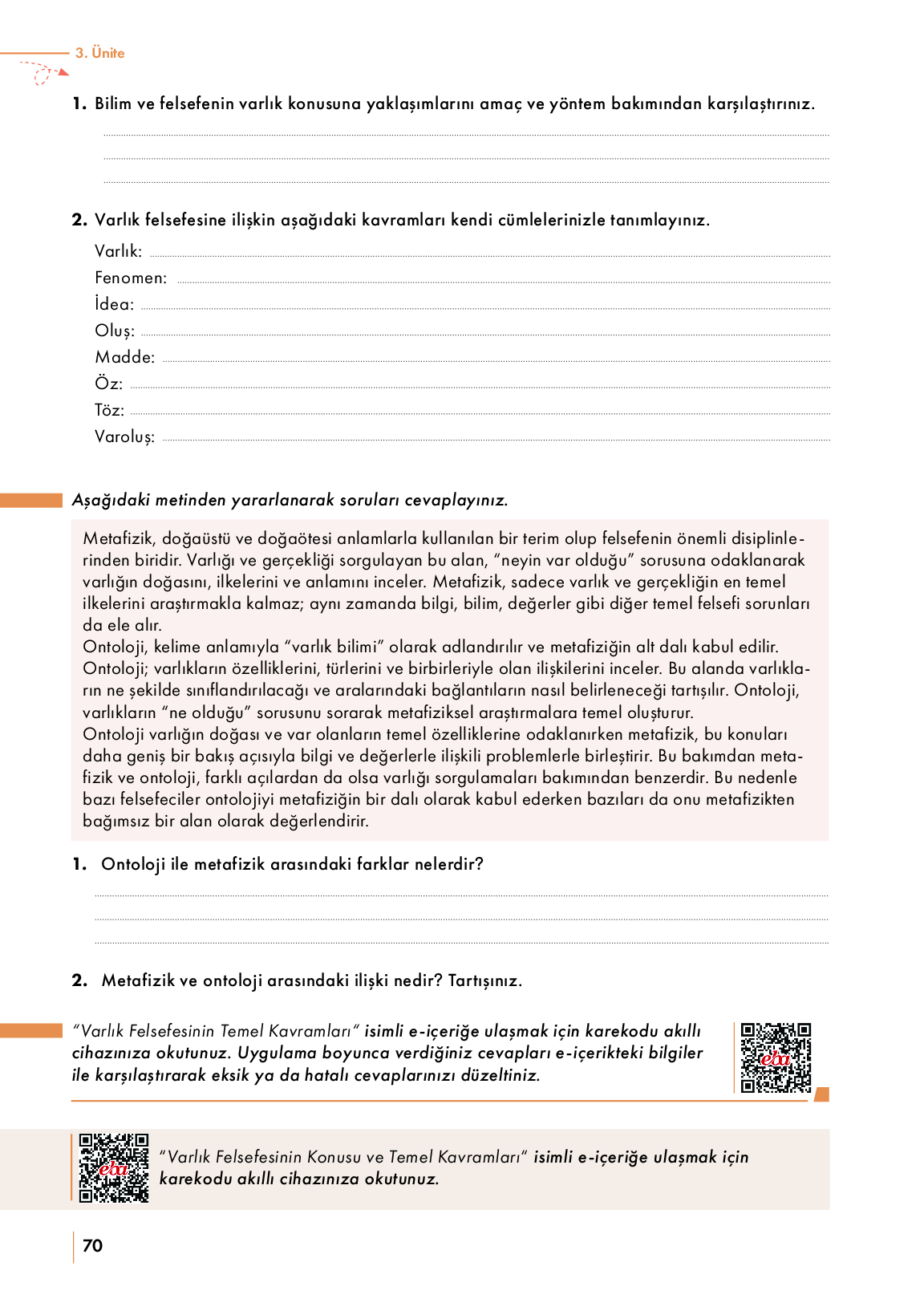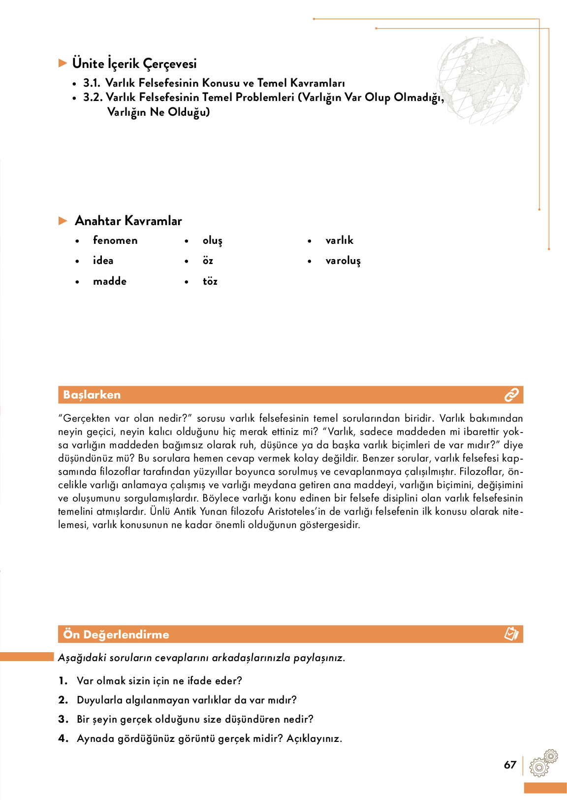 3.1. Varlık Felsefesinin Konusu ve Temel Kavramla