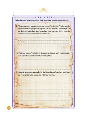 1. “Selamlaşmak” başlıklı metinde geçen “muhabbet” kelimesiyle