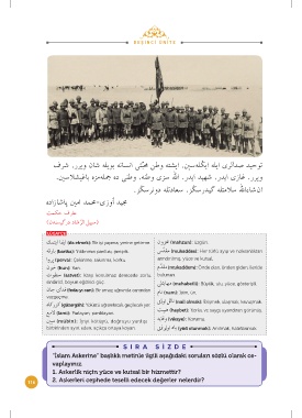 “İslam Askerine” başlıklı metinle ilgili aşağıdaki soruları sözlü olarak ce-