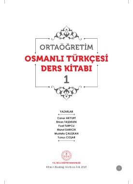 ORTAÖĞRETİM OSMANLI TÜRKÇESİ DERS KİTABI 1 YAZARLAR Caner AKYURT Erkan TAŞDELEN Fuat TURPCU Murat DARICIK Mustafa ÇALIŞKAN Yunus COŞAR Kitabın Basıldığı Matbaa Adı, 2025 1