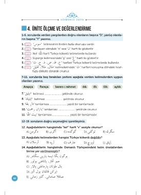 5. ( ) “ث ،ح ،ذ ،ض ،ظ ،ع” harfleri Türkçe kökenli kelimelerde kullanılır.