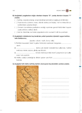 Ç) Aşağıda talik hatla verilmiş metnin okunuşunu boş bırakılan yerlere yazınız.