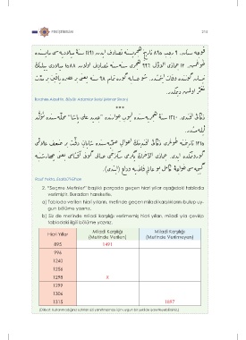 2. “Seçme Metinler” başlıklı parçada geçen hicri yıllar aşağıdaki tabloda