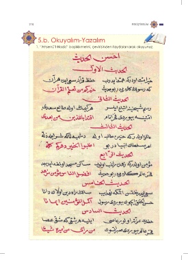 218 PEKİŞTİRELİM 5.b. OkuyalımYazalım 1. “Ahsenü’lHadis” başlıklı metni, çevirisinden faydalanarak okuyunuz.